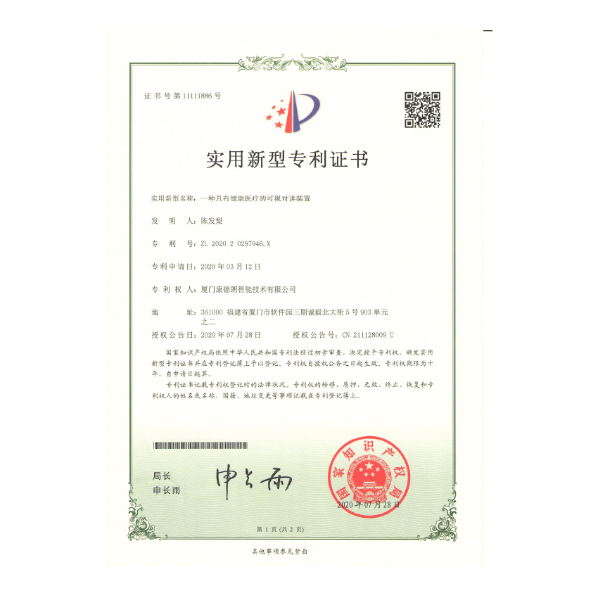 養(yǎng)老監(jiān)護可視對講實用新型專利證書